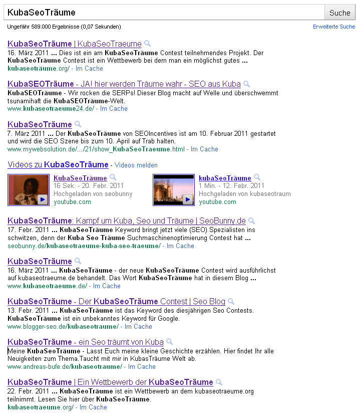 scheint heute Werbetrommeltag zu sein. Na dann will ich auch mal trommeln. Ich habe mich auch etwas gewundert, warum Du raus bist SeoBuny,… glaube auch die Lösung schon gefunden zu haben, werde die aber vorerst mal analysieren. Mittlerweile treiben wir uns ja auch ganz oben rum und du hast uns nun einen Platz frei gegeben, also momentan sind wir auf Platz vier der ersten Seite. Das schickt sich ja schon ganz gut an. Das schöne ist, wir haben noch ein Ass im Ärmel…. Aber die Konkurrenz schläft nicht. Wer aber mal unseren Beitrag zum Thema etwas genauer liest, der dürfte viellеiсht fündig werden, denn auch wir sind erst vor 2 Tagen auf einen versteckten Hinweis eines anderen Teilnehmers aufmerksam geworden.